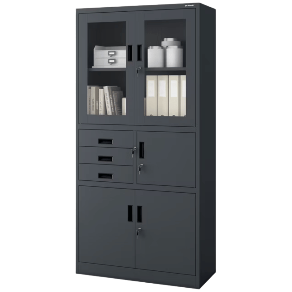 DELUKE Vitrinenschrank abschließbar GEDO - mit Tresor & Schubladen| Büroschrank aus Stahl Aktenschrank mit Glasfenster Metallschrank, 185x90x40cm Anthrazit
