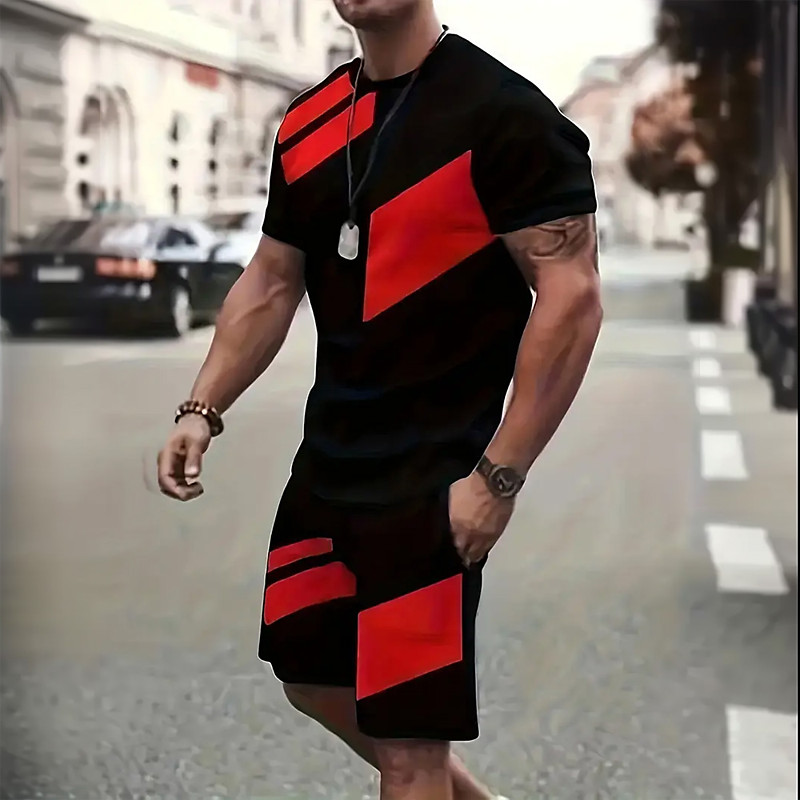 Men's Geometric 2pcs Tees sets Summer Tops Short Sleeve Short Pants Crew Neck Athleisure Sport Casual Daily 3D Print Summer Robin's Egg Blue Grey Green