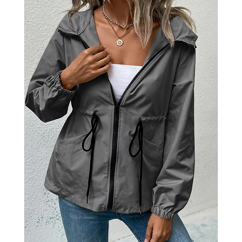 Women's Trench Coat Waterproof Rain Jackets Rain Coats With Hood Waterproof Windproof Zipper Pocket Fashion Outdoor Plain Going out Weekend Zipper Regular Hooded Regular Fit Long Sleeve Outerwear