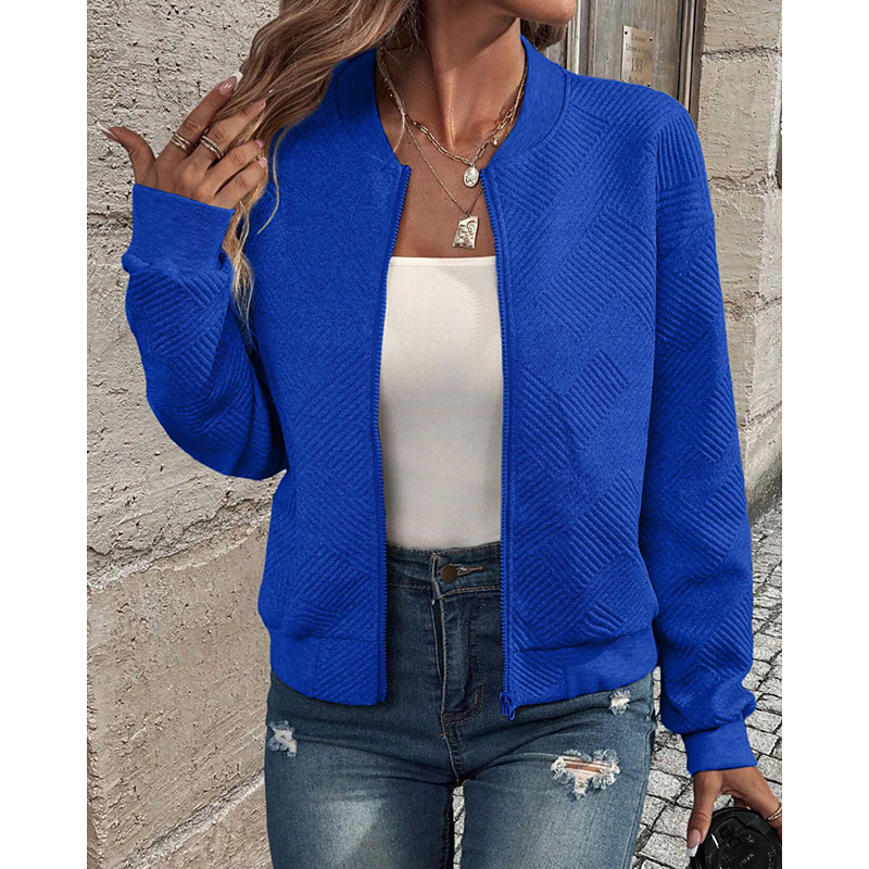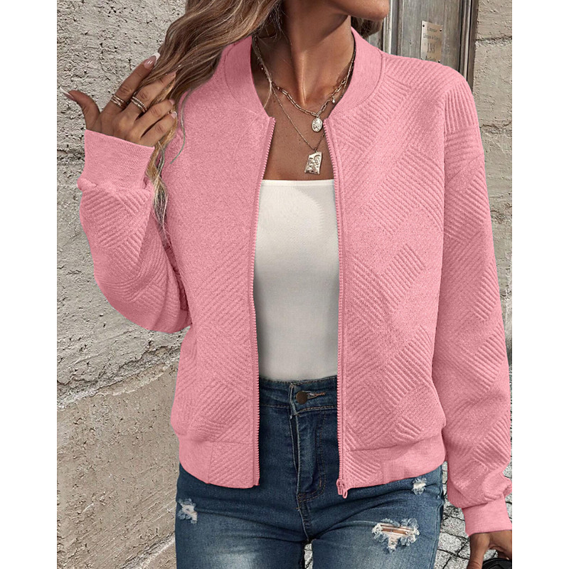 Women's Casual Jacket Textured Jackets Comfortable Zipper Fashion Modern Casual Plain Going out Weekend Zipper Regular Stand Collar Regular Fit Long Sleeve Outerwear Black White Pink Spring Fall