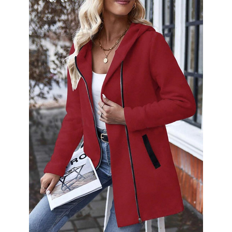 Women's Hoodie Jacket Comfortable Breathable Zipper Pocket Casual Plain Vacation Street Casual Daily Wear Zipper Regular Hooded Regular Fit Long Sleeve Outerwear Black Red Gray Spring Fall