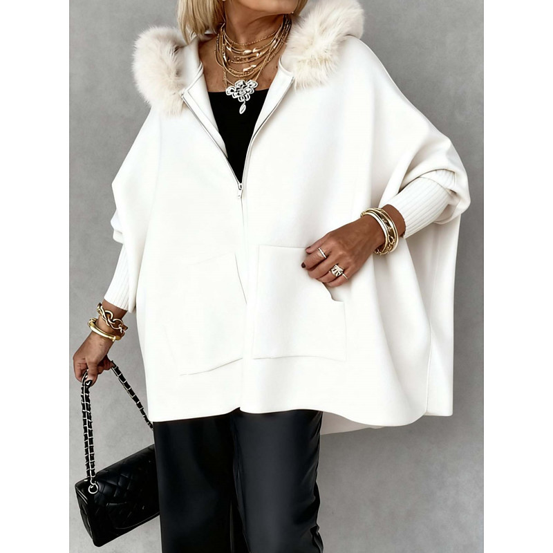 Women's Coat Warm Breathable Fur Trim Zipper Pocket Buttons Casual Solid Color Vacation Street Daily Wear Going out Zipper Regular Hoodie Regular Fit Long Sleeve Outerwear Black Wine Khaki Fall Winter