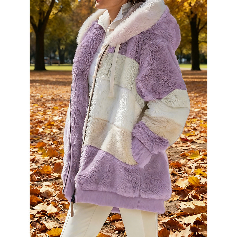 Women's Fleece Jacket Teddy Coat Hoodie Jacket Warm Breathable Zipper Pocket Fleece Lined Casual Stripe Vacation Street Daily Wear Going out Zipper Regular Hoodie Regular Fit Long Sleeve Outerwear
