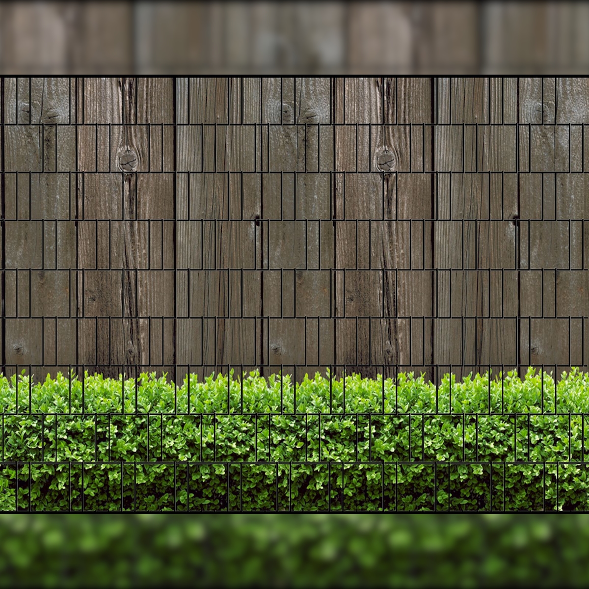 zaun|zu® Sichtschutzstreifen Holzwand & Buxus - Bedruckter Sichtschutz 2,5m x 1,8m