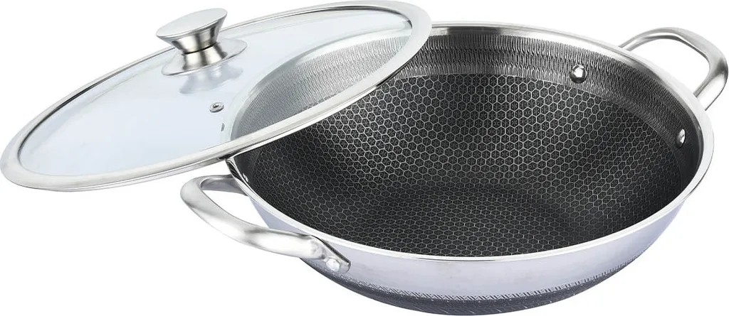 Wok Pfanne/Topf Edelstahl Wabenstruktur Ø32cm