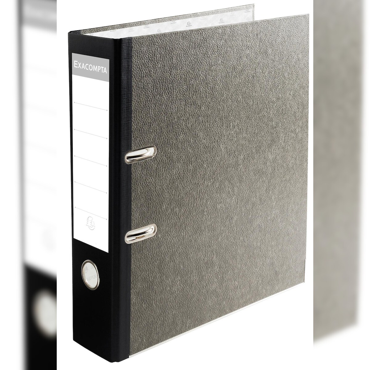Exacompta 53681E 10x Ordner Prem' Touch wolkenmarmoriert, mit 2 Ringen, 80mm Rücken, für Format DIN A4 - Grau - Rücken schwarz