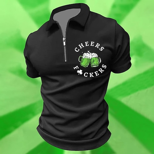 San Patrizio Per uomo Lettera Birra Polo Polo con zip Manica Corta Magliette polo Collo ripiegato Con cerniera Casual Vacanza Giorno di San Patrizio Ferie Festival 3D Stampato Estate Nero Bianco Verde