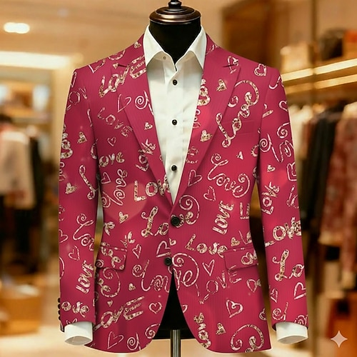San Valentino Per uomo Testo Giacca blazer Cappotto Confortevole Casual Traspirante Artistico Casual Quotidiano Abbigliamento da sera Festival Stampa 3D Bottoni Multi-tasche Tutte le stagioni