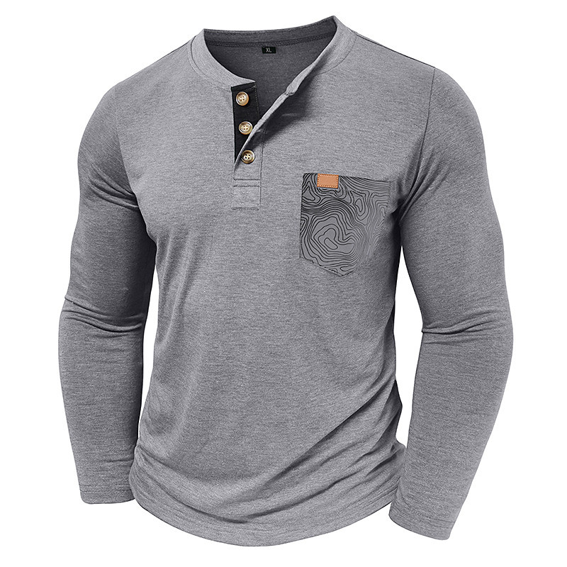 Men's T Shirt Henley Shirt Tee Long Sleeve Tribal Solid Designer Basic Bohemian Pocket Henley Outdoor Casual Daily Summer Fall Dark Grey Black White Henley T-Shirt