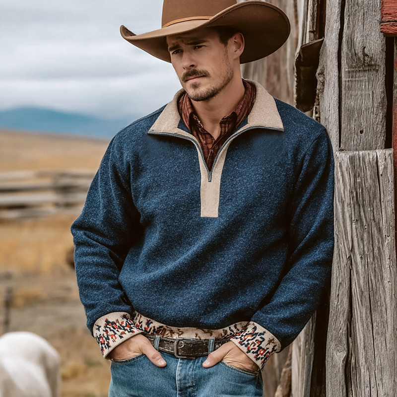 Men's Tribal Cowboy Sweatshirt Ethnic Vintage Retro Long Sleeve Stand Collar Outdoor Work Gift Blue Brown Khaki Zipper Fall Winter Designer S M L XL XXL XXXL