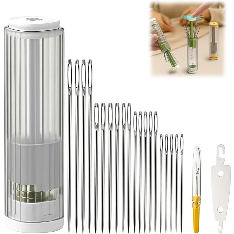 Magnetic Needle Box 23pcs Portable Sewing Storage Case Kit Including 20 Needles,1pc Magnetic Storage Box,1pc Threading Aid,1pc Seam Ripper Multi-Purpose Large-Eye Stitching Needle and Thread Kit