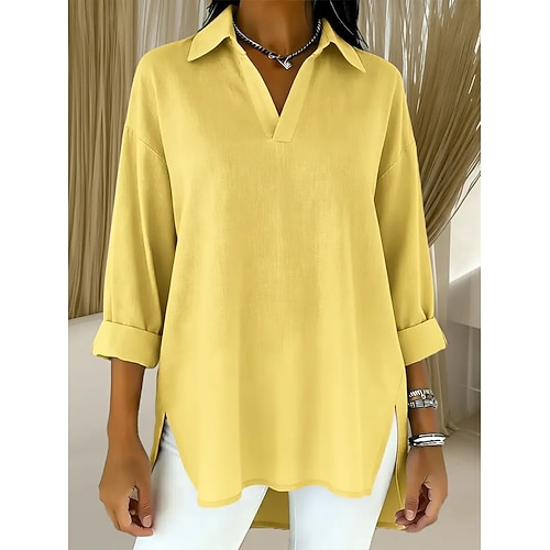 Per donna Blusa Finto cotone e lino Semplice Quotidiano Elegante Essenziale Manica 3/4 Scollo a V Top Regolari Quotidiano Lavoro Ferie Bianco Giallo Vino Primavera Autunno