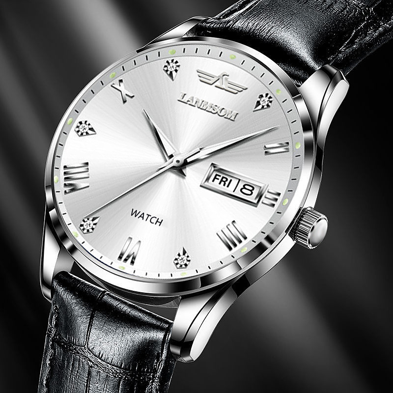 Men Quartz Watch Minimalist Sports Casual Business Calendar Date Week Waterproof Decoration Stainless Steel Watch