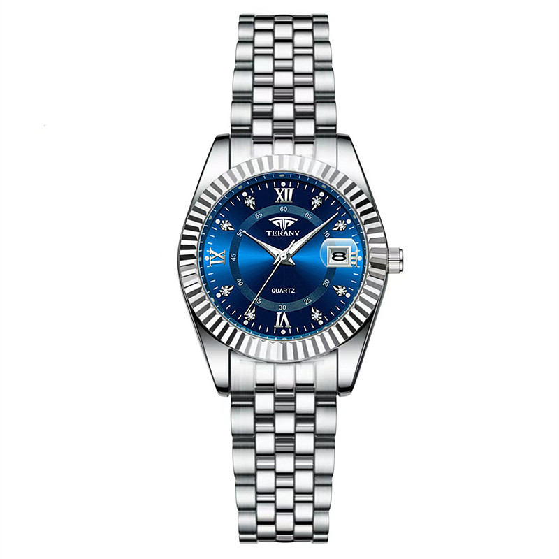 Women Quartz Watch Wrist Watch Retro Vintage Rhinestone Wristwatch Luminous Calendar Date Week Waterproof Stainless Steel Watch