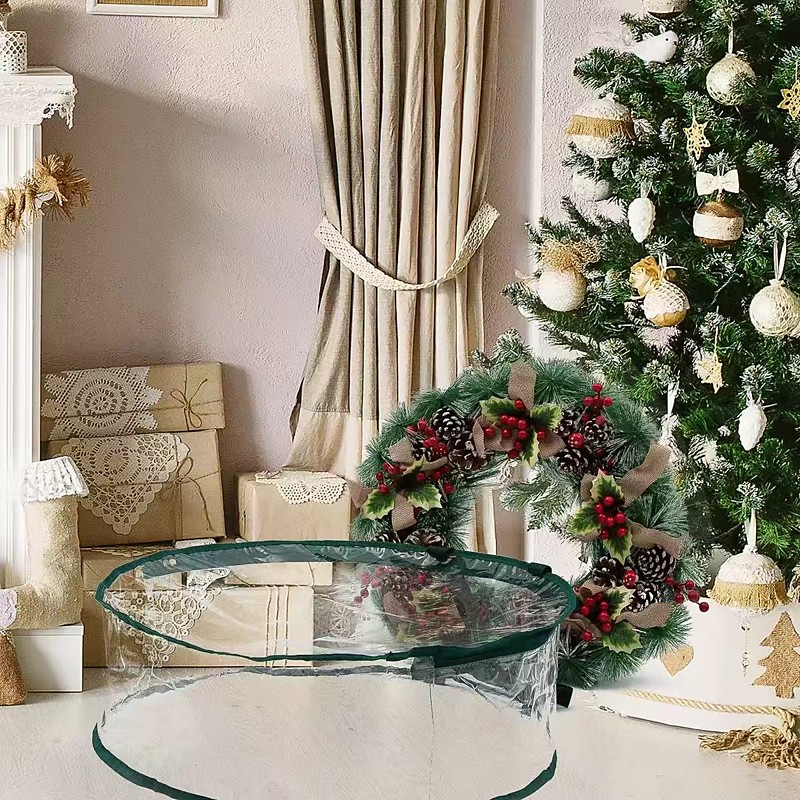 1/2PCS Transparent Wreath Storage Bag 24-inch/30-inch Christmas Wreath Storage Container with Handle Heavy-Duty PVC Wreath Cover for Seasonal Christmas Wreath Storage and Organizer Provides Winter