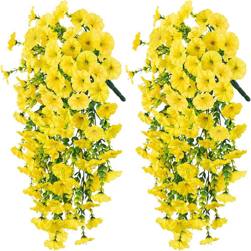 2 Pack Artificial Hanging Flowers Faux Morning Glory with Eucalyptus Leaves UV Resistant Realistic Plants for Home Garden Decor Multi-Color No Container All-Season Spring Perfect for Thanksgiving