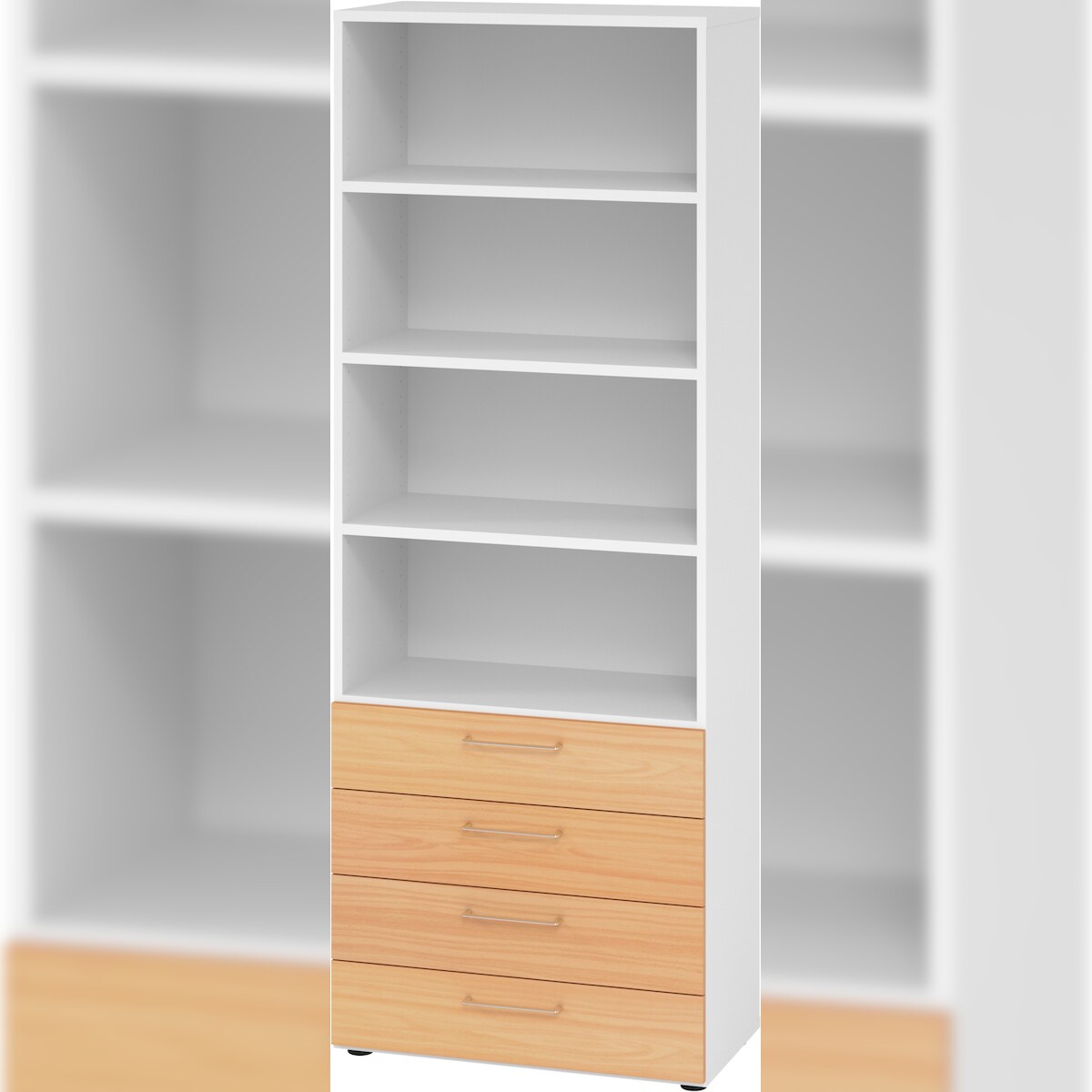 bümö smart Schubladenschrank, Büroschrank 80cm breit in Weiß/Buche mit 4 Schüben & 4 Regalfächern - Bürocontainer aus Holz, Container mit