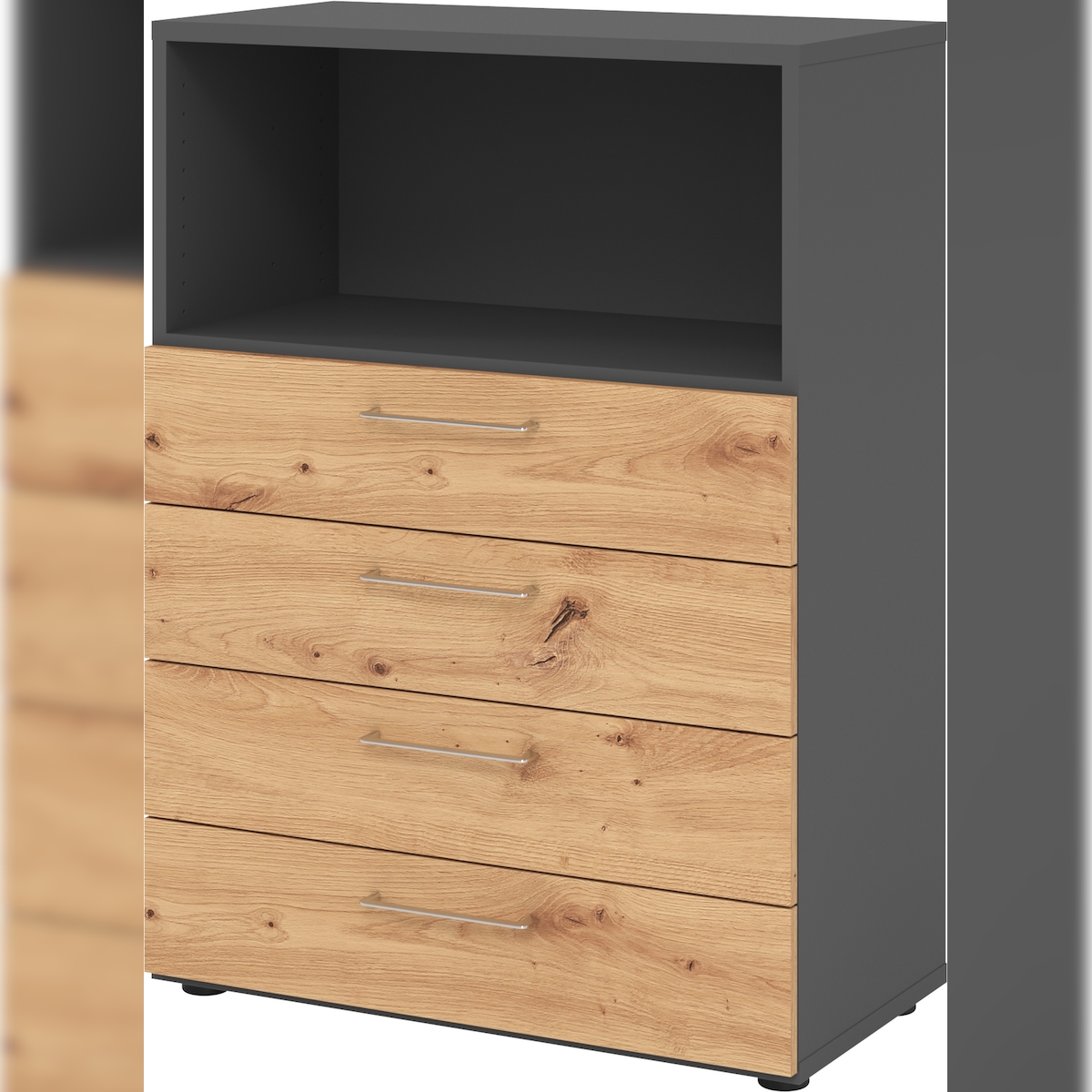 bümö smart Schubladenschrank, Büroschrank 80cm breit in Graphit/Asteiche mit 4 Schüben & 1 Regalfach - Bürocontainer aus Holz, Container mit
