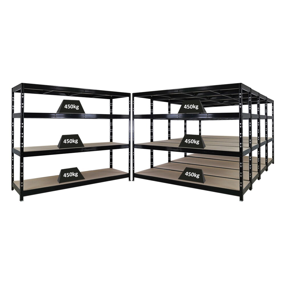 Proregal Mega Deal | 5x Profi Schwerlastregal Rhino | HxBxT 180x240x60cm | 4 Spanplatten-Ebenen 8mm | Fachlast 450kg | Schwarz