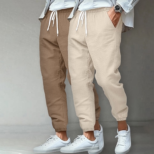Per uomo Pantaloni di Lino Pantaloni Pantaloni Estivi Pantaloni da Spiaggia Pantaloni casual Tasca Elastico in vita Confezione multipla Tinta unica Comodità Traspirante Lunghezza intera All'aperto