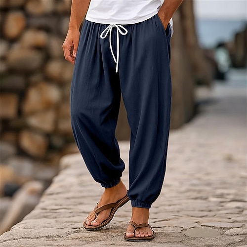 Per uomo Pantaloni di Lino Pantaloni Pantaloni Estivi Pantaloni Larghi Pantaloni da Spiaggia Coulisse Elastico in vita Bottoni Semplice Comodità Traspirante Lunghezza intera Casa Casuale Quotidiano