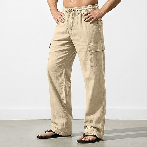 Per uomo Pantaloni di Lino Pantaloni Pantaloni Estivi Coulisse Elastico in vita Multi-tasche Semplice Comodità Traspirante Lunghezza intera Casuale Quotidiano Ferie Moda Stile Classico Nero Bianco