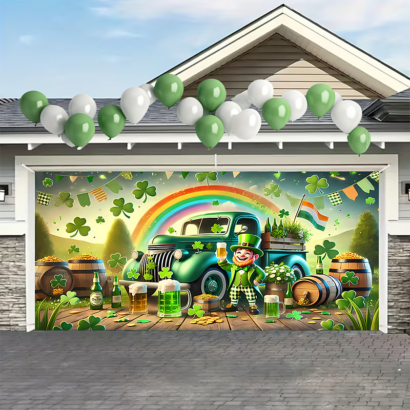 St. Patrick's Day Tapestry Garage Door Cover Large Hanging Backdrop Elf Cute 3D Party Outdoor Holiday Shooting Backgrounds Yard Home Decor