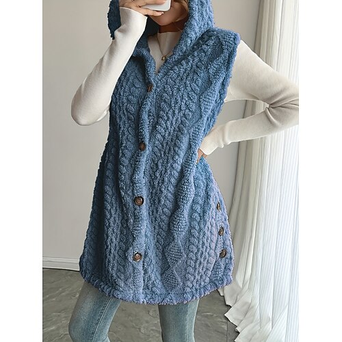 Per donna Gilet in pile Gilet Confortevole Traspirante Bottoni Casual Semplice Vacanza Streetwear Casuale Abbigliamento quotidiano Monopetto Lungo Con Cappuccio Vestibilità regolare Senza Maniche