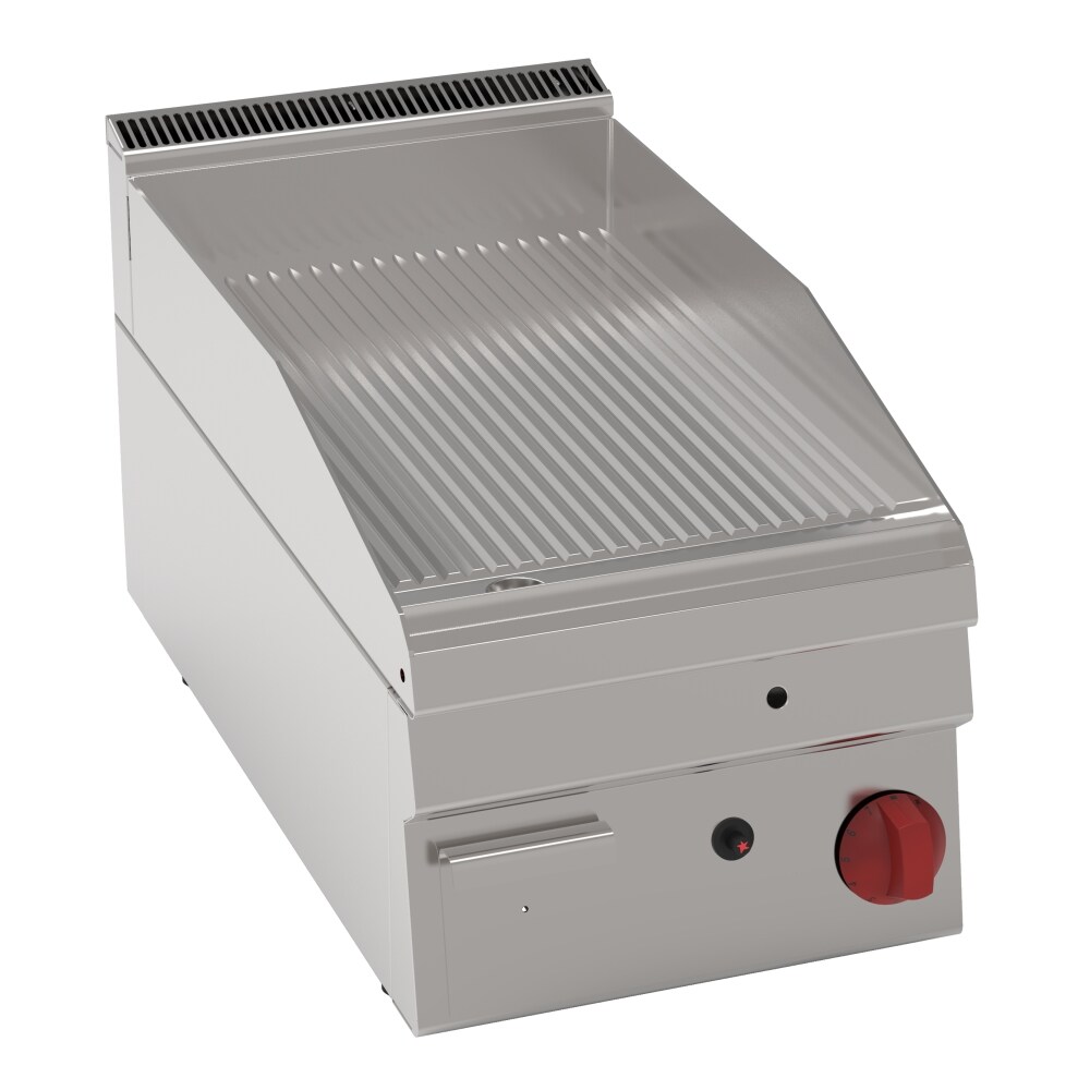 EURAST - Platte-frytop fe 15 mm gas geriffelt tischmodell - 350x600x280 mm - 4 Kw - 30120311
