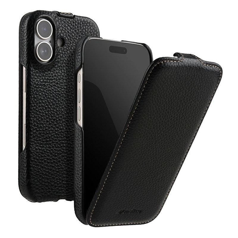 MELKCO Mobilskal till iPhone 15 MagSafe Vertikalt Flip Äkta Läder + PC - Svart