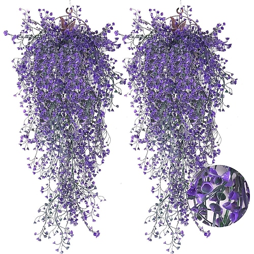 4 künstliche Hängepflanzen aus UV-beständigem Kunststoff mit Ranken, Blättern und Blumen zur Wanddekoration für den Frühling, drinnen und draußen, Schlafzimmer und Wohnung.