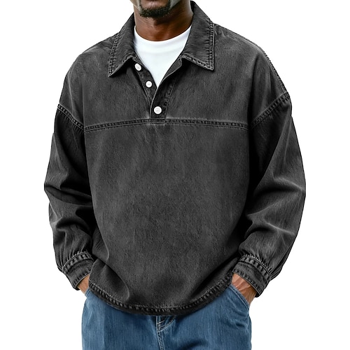 Per uomo Maglietta Camicia 100% cotone lavaggio acido Manica Lunga Maglione Mezza zip Primavera Autunno Autunno Inverno Semplice Vintage Streetwear Casual Lavato Manica corta Casuale Casa Streetwear