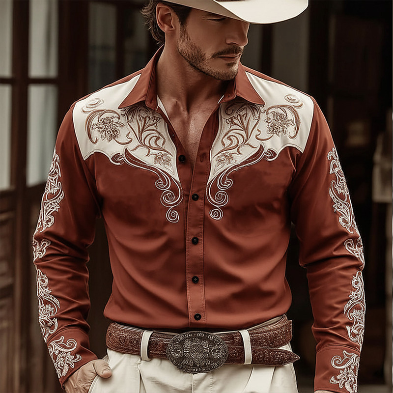 Men's Paisley Floral Print Ethnic Shirt Western Shirt Cowboy Shirt Long Sleeve Vintage Retro Outdoor Casual WorkWear Spring Fall Turndown Front Two Pockets Linen Like Shirt Button Up Shirts