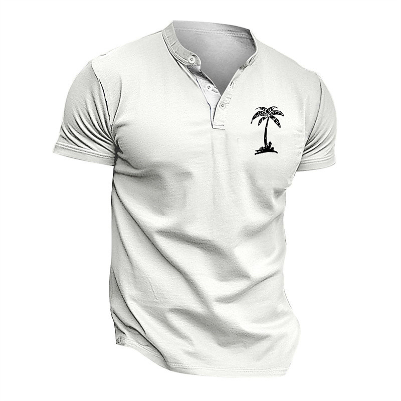 Men's T Shirt Henley Shirt Tee Short Sleeve Shirt Short Sleeve Henley Summer Spring Palm Tree Fashion Streetwear Casual Buttons Print Daily Vacation Sports Outdoor Black Light Green White Top Tee