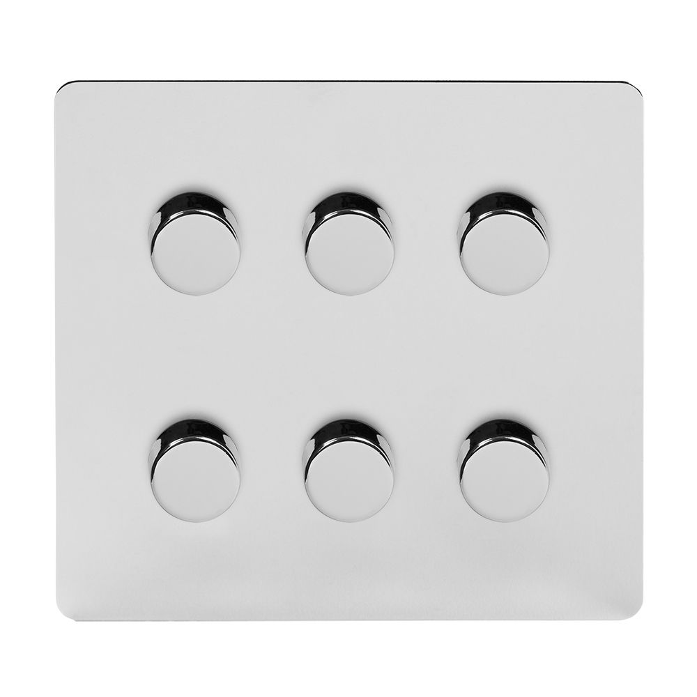 Soho Lighting Polished Chrome Flat Plate 6 Gang 2 Way Intelligent Trailing Dimmer Switch Screwless 150W LED (300w Halogen/Incandescent) - Size: H 146