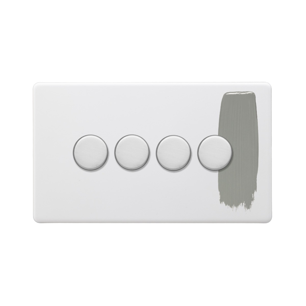 Soho Lighting Primed Paintable 4 Gang 2 -Way Intelligent Dimmer 150W LED (300w Halogen/Incandescent) with Brushed Chrome Switch - Size: 86mm x 146mm