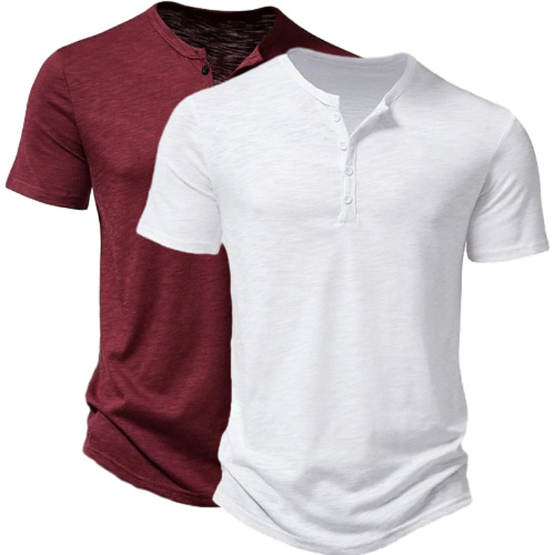 2 Pack Men's T Shirt Henley Shirt Tee Top Short Sleeve Plain Solid Designer Basic Modern Contemporary Buttons Plain Henley Vacation Street Casual Summer Henley T-Shirt