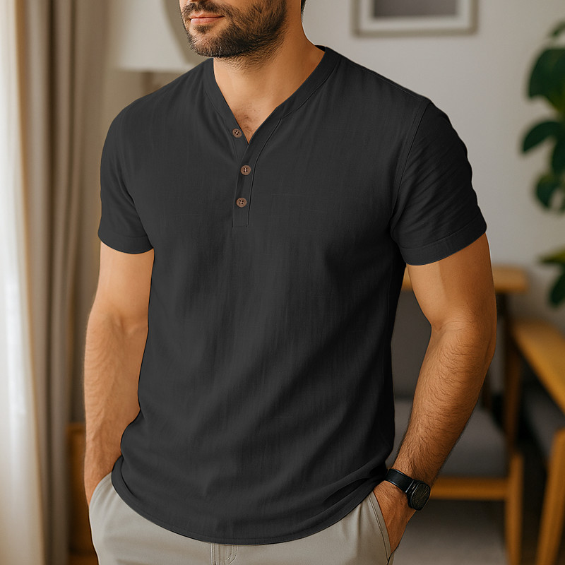 Men's Henley Shirt Tee Top Linen T-Shirt Short Sleeve Short Sleeves V Neck Henley Summer All Seasons Plain Fashion Designer Basic Plain Vacation Street Casual Black White Light Blue Top Tee for Men