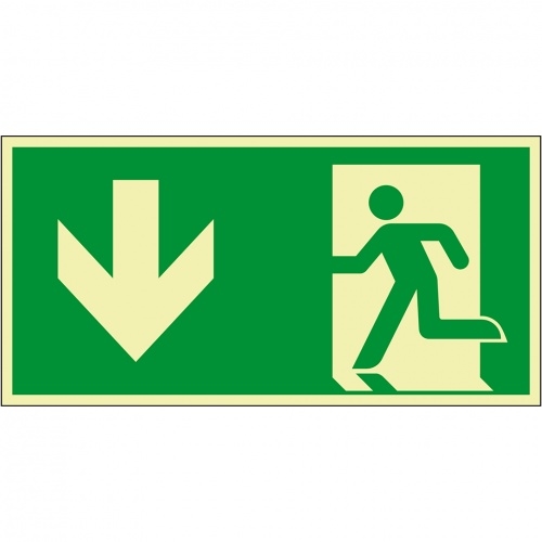 Schild I PERMALIGHT power langnachleuchtend Rettungszeichen Rettungsweg rechts aufwärts, Aluminium, 300x150mm, ASR ISO 7010 E002
