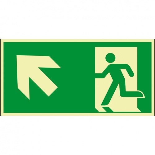 Schild I PERMALIGHT power langnachleuchtend Rettungszeichen Rettungsweg links aufwärts, Aluminium, 300x150mm, ASR ISO 7010 E001