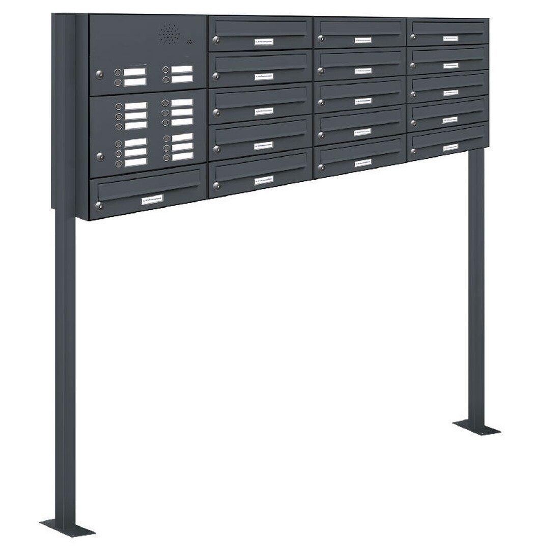 AL Briefkastensysteme 16 Fächer Premium Stand Briefkasten Anlage in RAL 7016 Anthrazit für Post A4, robust, wetterfest, Artikelnummer: 132P16S4KSP7016