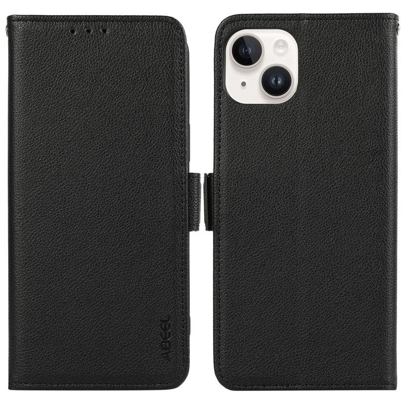 ABEEL iPhone 14 Plus Plånboksfodral Konstläder Litchi RFID Skydd - Svart