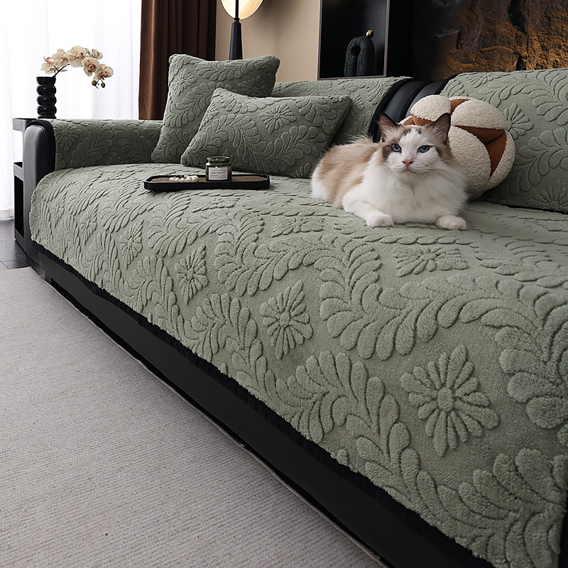 Luxury Thick Autumn Winter Sofa Cover, Anti-Slip, Anti-Scratch Comfort Cotton Velvet, 3D Jacquard Sofa Cushion Protector with Backrest Cloth