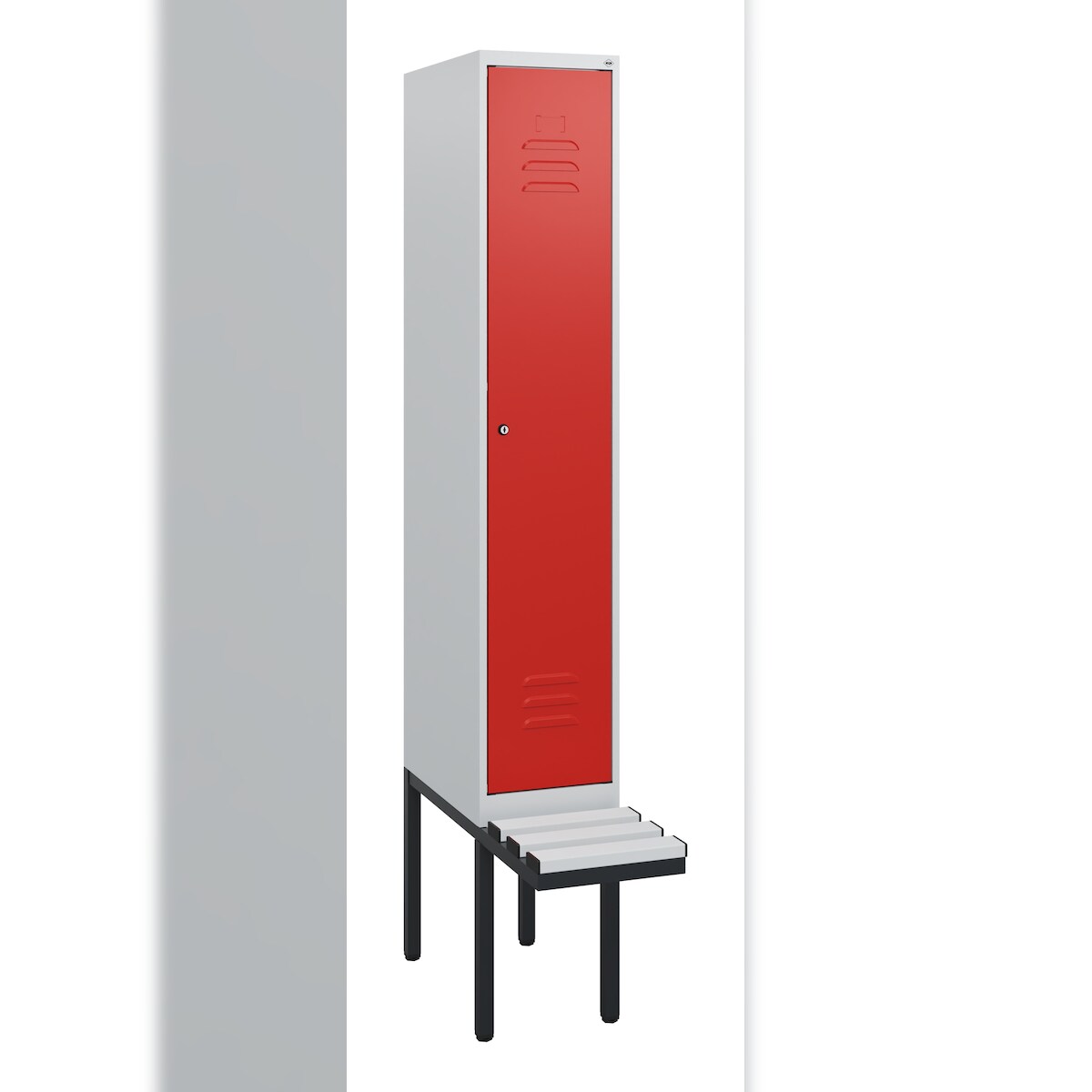 C+P Spind Classic PLUS, Sockel, 1 Abteil, HxBxT 195x30x50cm, Zylinderschloss, Hellgrau/Rot von PROREGAL