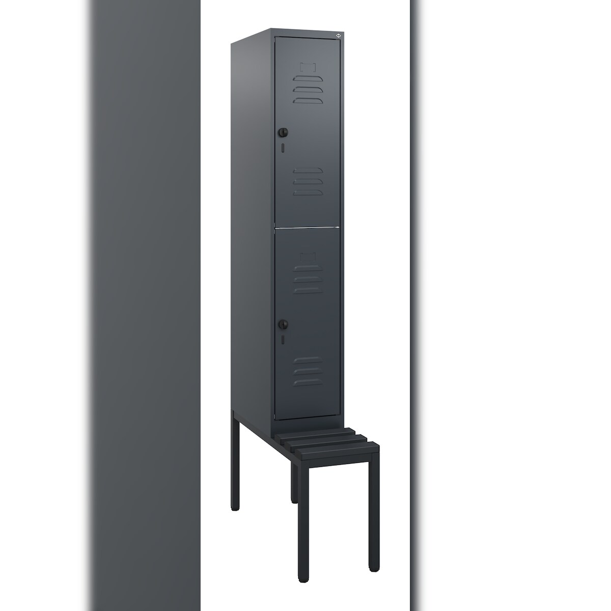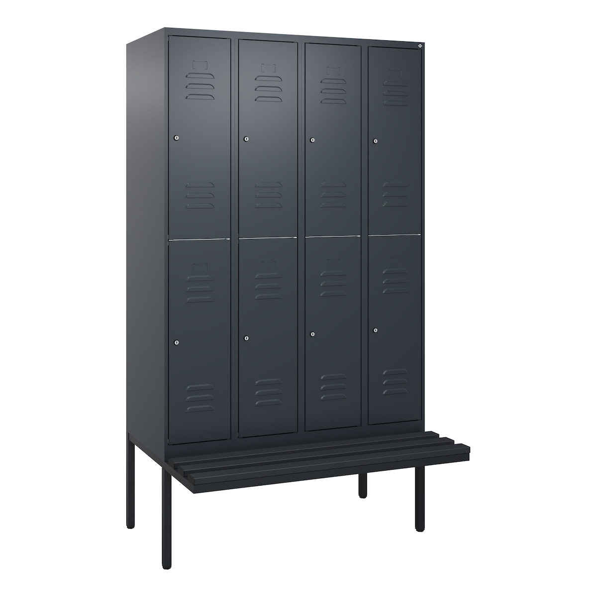 C+P Spind Classic PLUS, Kunststoff schwebende Sitzbank, 8 Abteile, HxBxT 212x120x82cm, Zylinderschloss, Anthrazit von PROREGAL