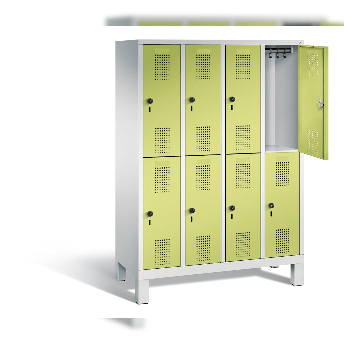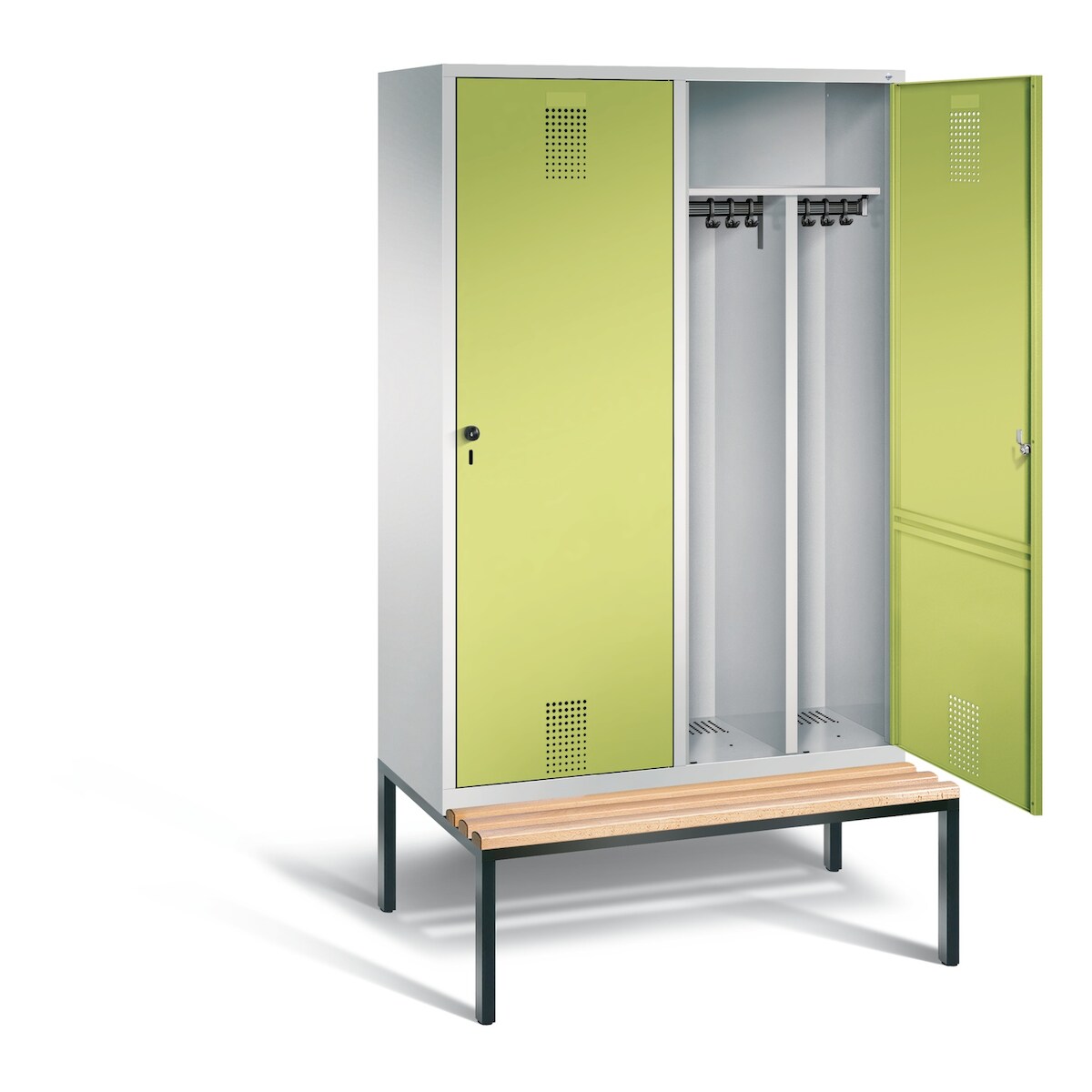 C+P Doppel-Spind Classic PLUS Kunststoff untergebaute Bank 4 Abteile Trennwand HxBxT 212x120x82cm Sicherheitsdrehriegel HellgrauClowngrün von PROREGAL