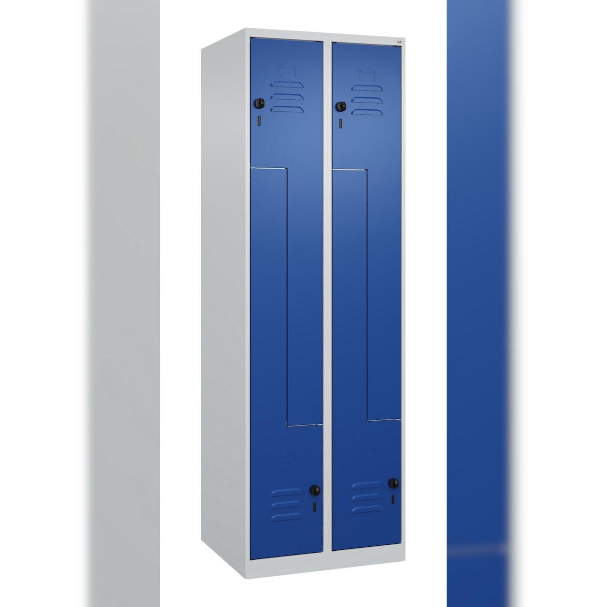 C+P Z-Spind Classic PLUS bodenstehend, 4 Abteile, HxBxT 185x60x50cm, Sicherheitsdrehriegel, Hellgrau/Enzianblau von PROREGAL