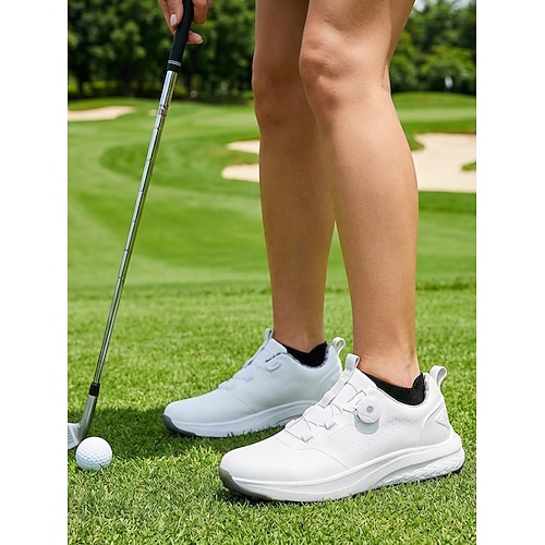 scarpe da golf da donna con chiusura a quadrante bianco – scarpe da ginnastica ammortizzate senza tacchetti per golfiste, camminate, allenamento, campo pratica e sport all'aria aperta