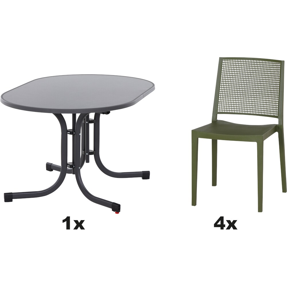 SIENA GARDEN Urban Lights Set 5teilig Square Stuhl gastrotauglich olive mit Tisch Paco 140x90