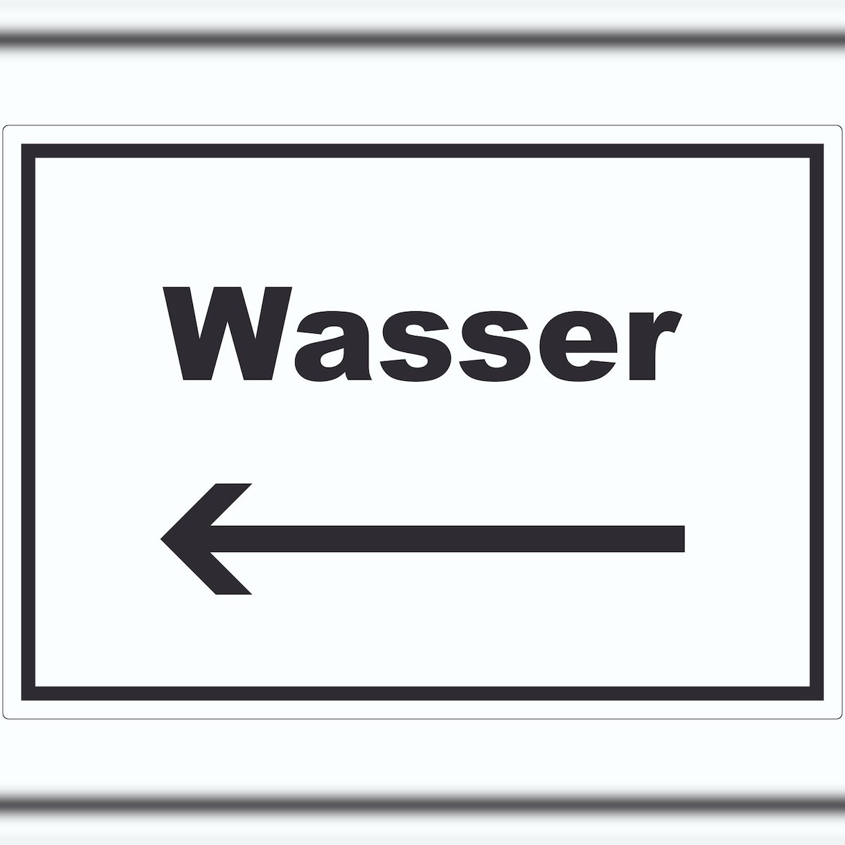 HB-Druck Wasser Aufkleber mit Text und Richtungspfeil links Anschluss waagerecht A0 (841x1189mm)